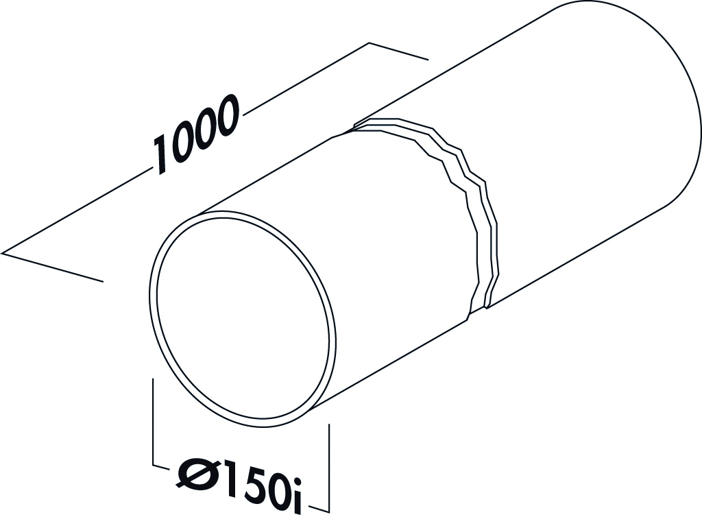 Rundt fastrør Ø150 mm – stillegående og effektiv lufttransport.