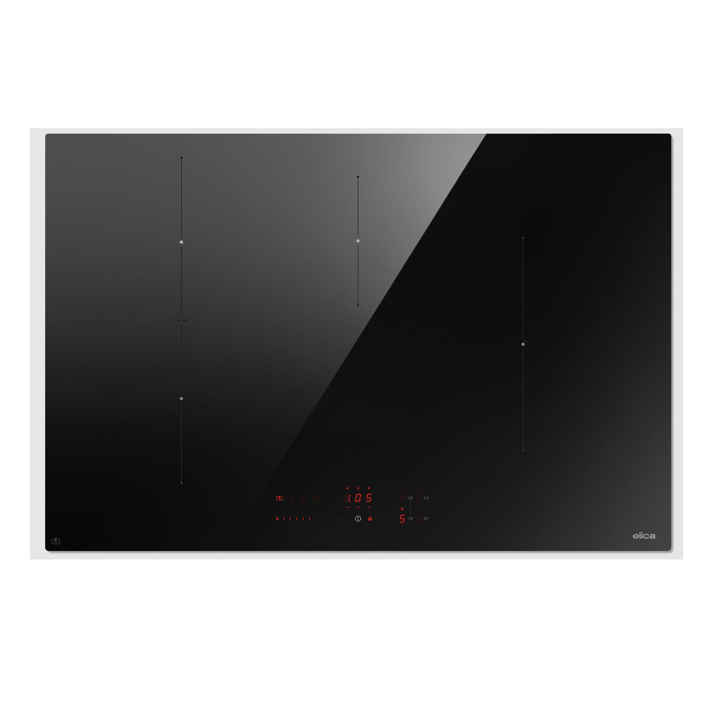 Stor 80 cm induksjonstopp med Connex-teknologi for smart integrasjon. Brofunksjon og elegant sort glassdesign.