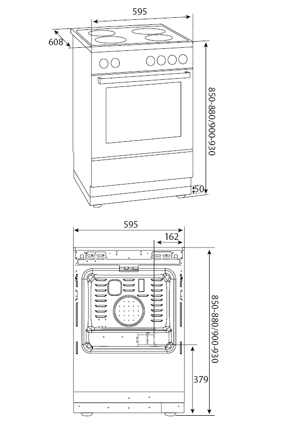 - Produkt (BxDxH) 595 x 608 x 850 - 880 / 900 - 930 mm