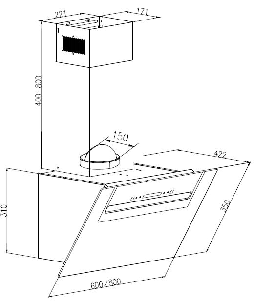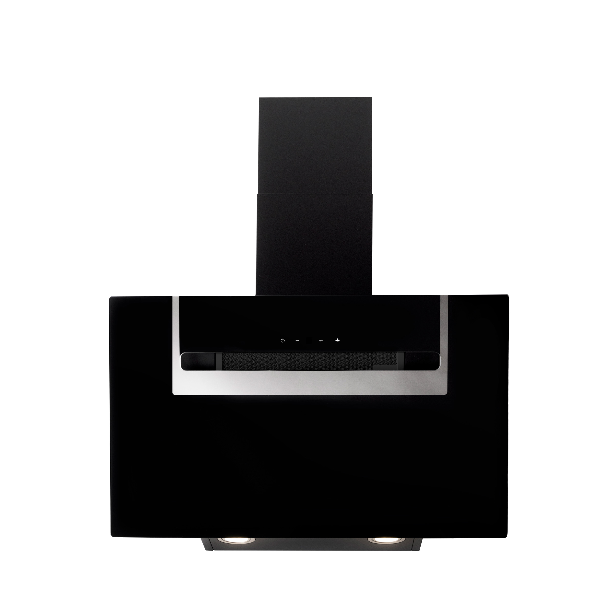 Vægmonteret emfang, skråtstillet. Med intern motor - Sort glas/spejl liste - 600 mm - A++