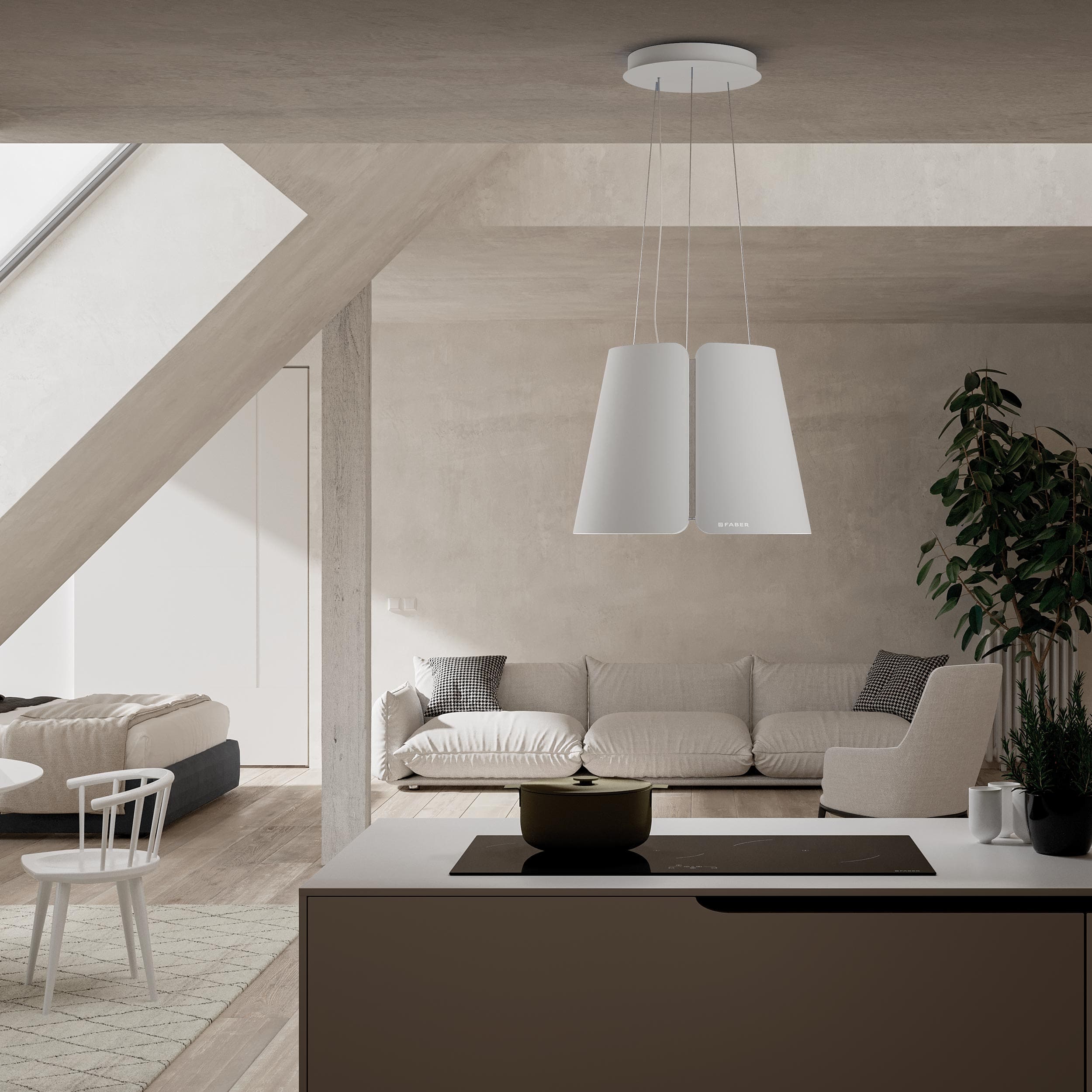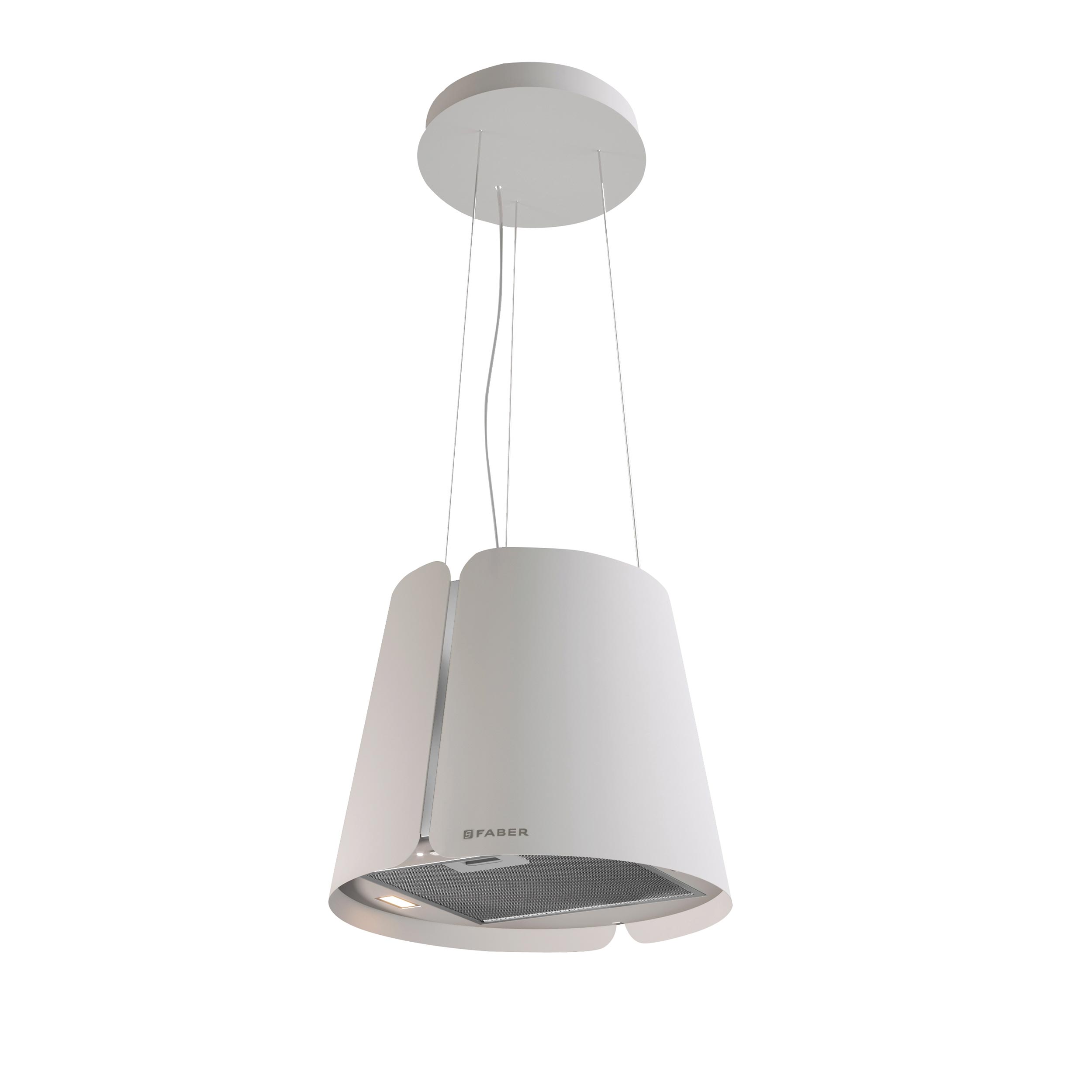 Frittstående vaierhengt kjøkkenvifte med intern motor og resirkulasjonsfilter – Matt hvit – Ø430 mm – A