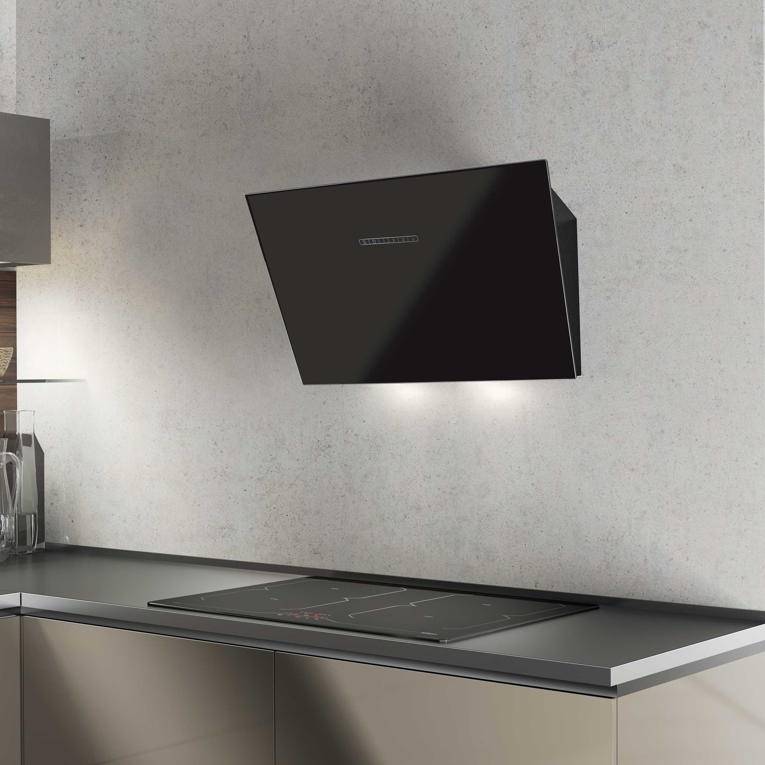 Veggmontert hette, skråstilt. Med innebygget motor - Sort / sort glass - 600 mm - A