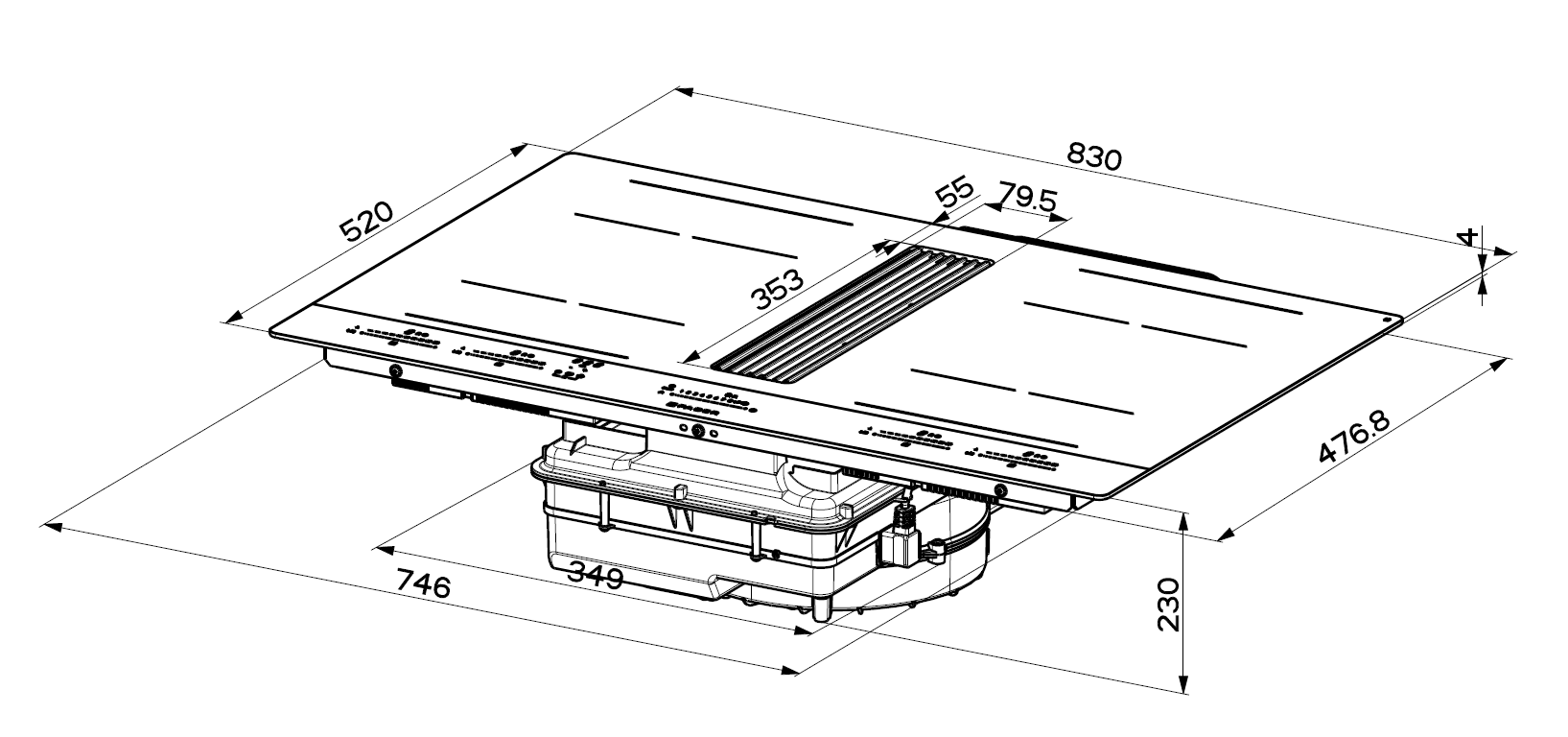 - Produkt (BxDxH) 830 x 520 x 230 mm