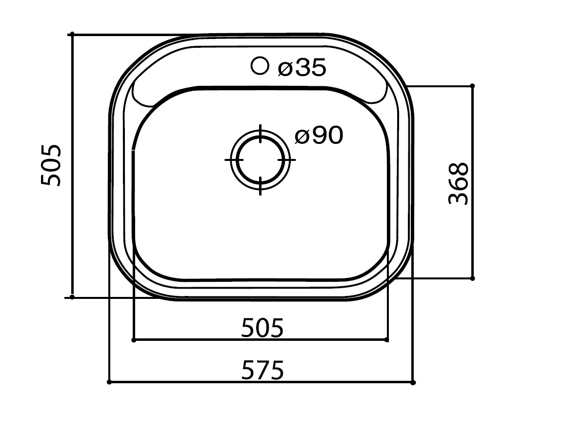 m/hul center, Stålvask, Enkel kum med bakkant. For under- eller planliming, m/hul center, Stålvask, Enkel kum med bakkant - Rustfritt stål - 35 ltr