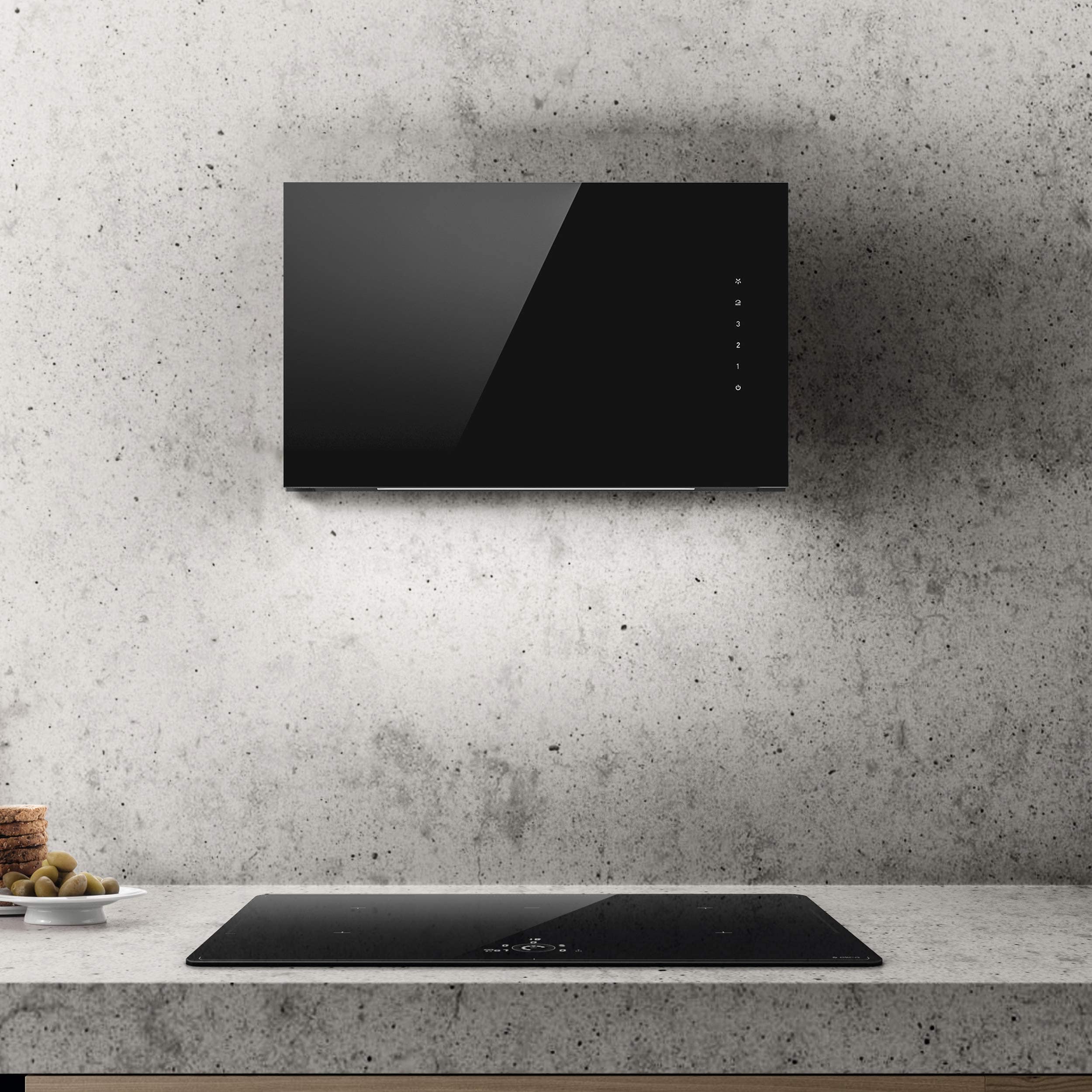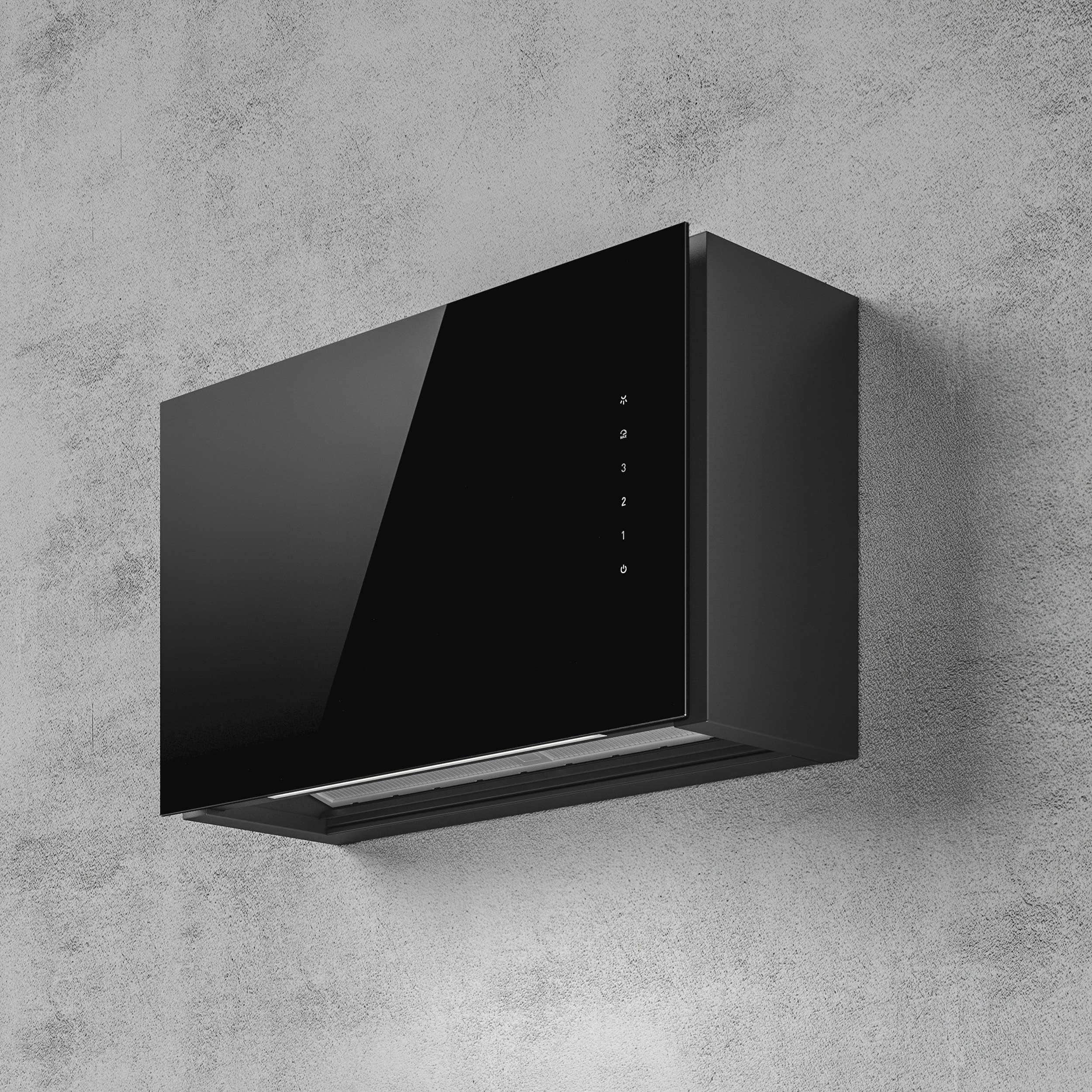 Prisvinnende veggvifte i svart glass med Wi-Fi og smart styring