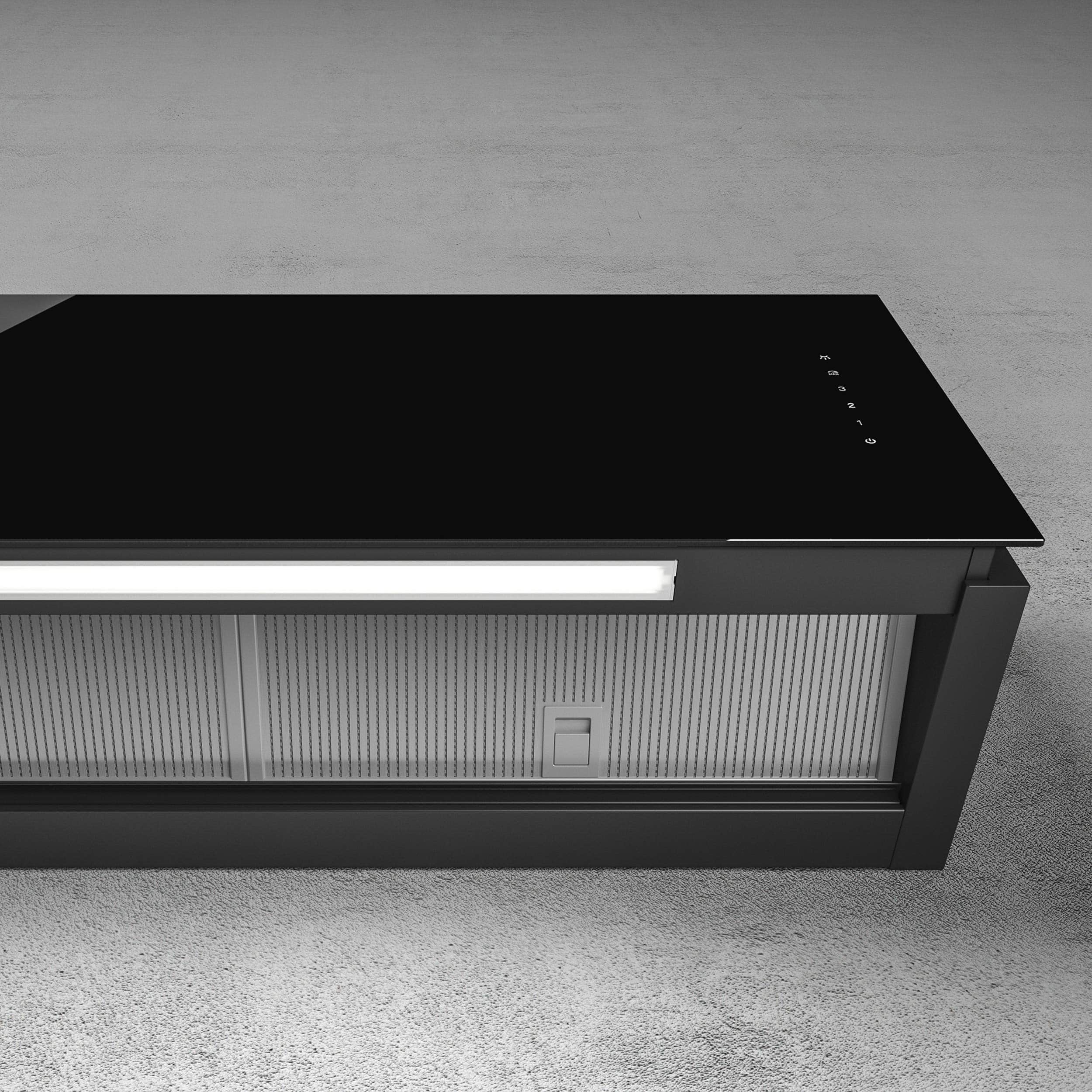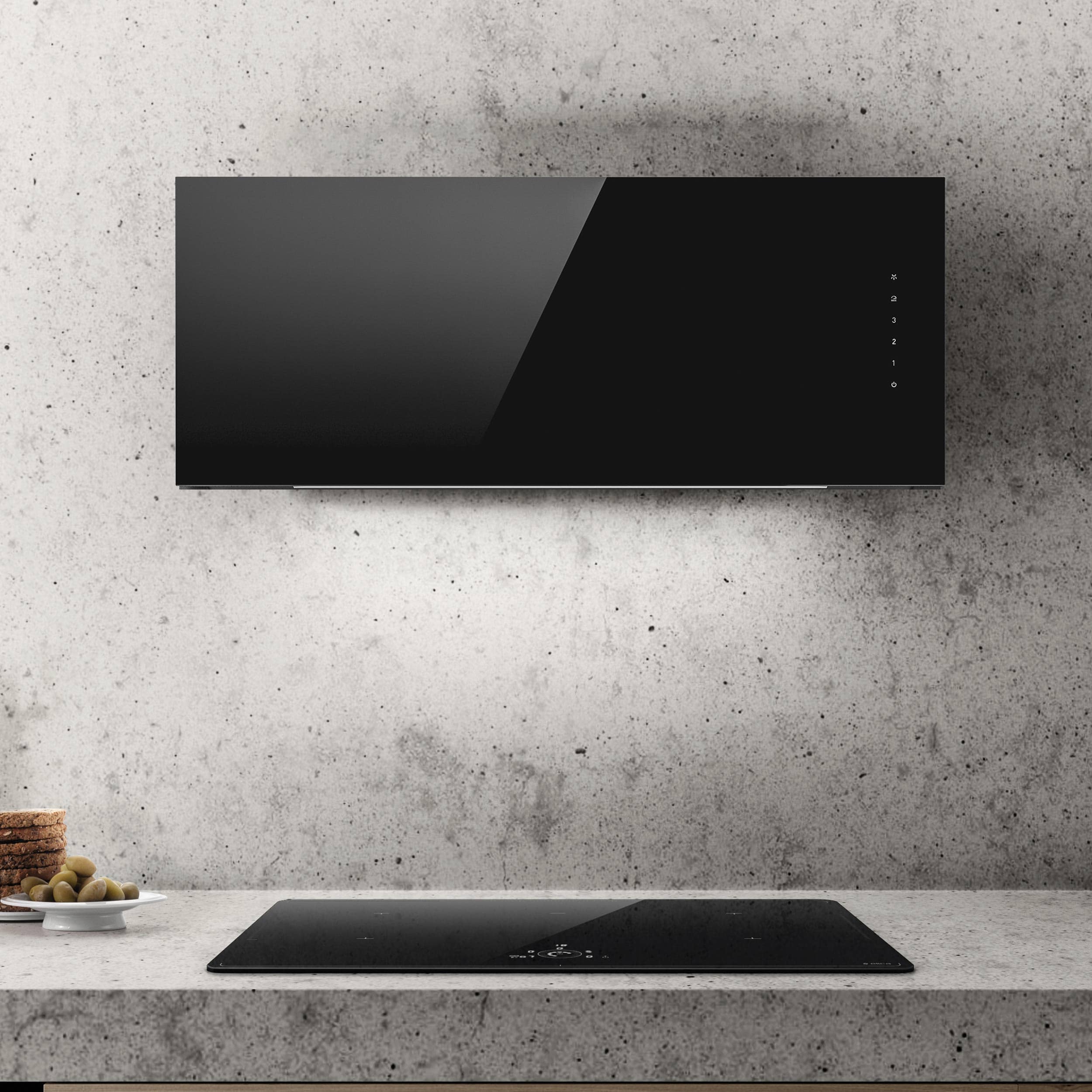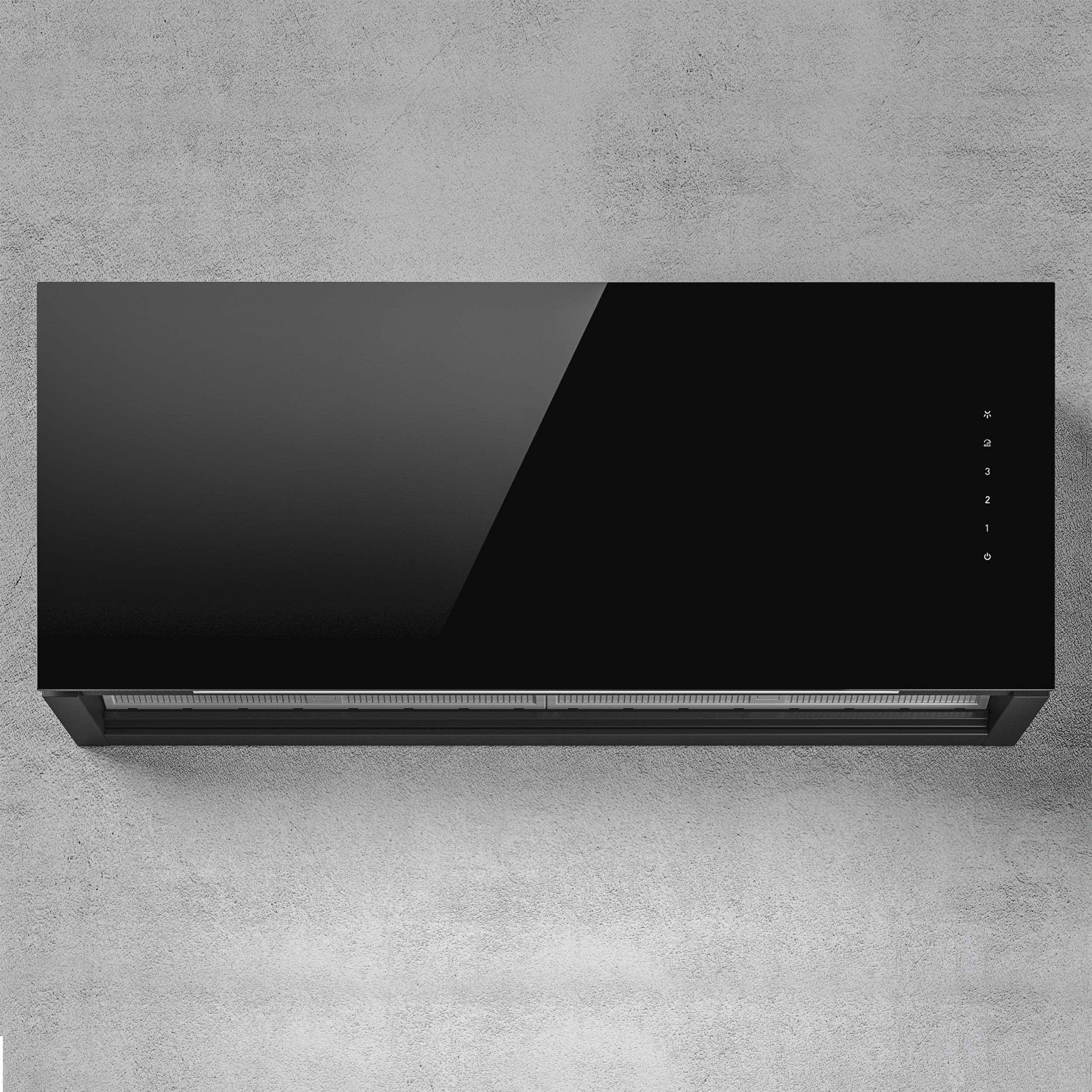 Prisvinnende veggvifte 90 cm i svart glass med Wi-Fi