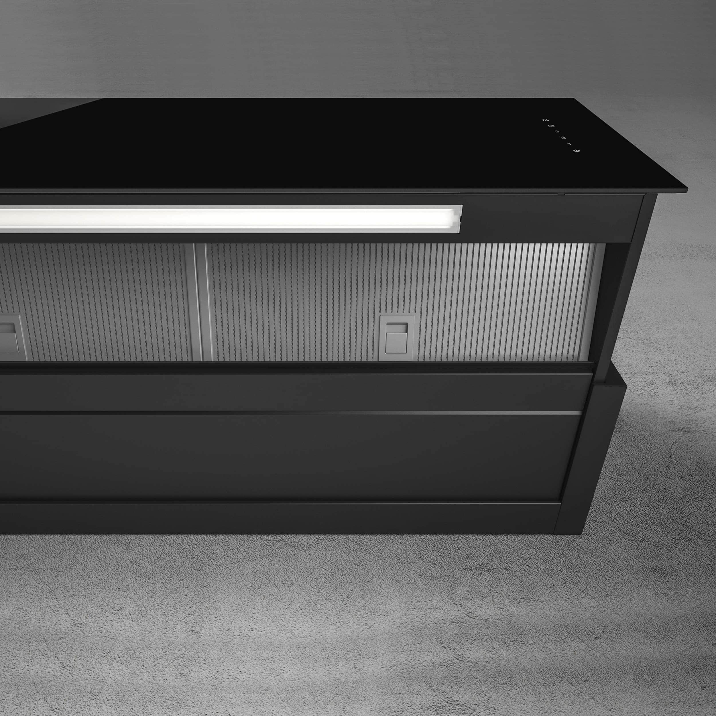 Leveres inkl. long life resirkulasjonsfilter Med resirkulasjonsversjonen er rørføringen til et punkt utenfor kjøkkenet ikke nødvendig. I stedet renses luften ved gjennomstrømming i aktive kullfiltre og føres deretter tilbake til kjøkkenet.