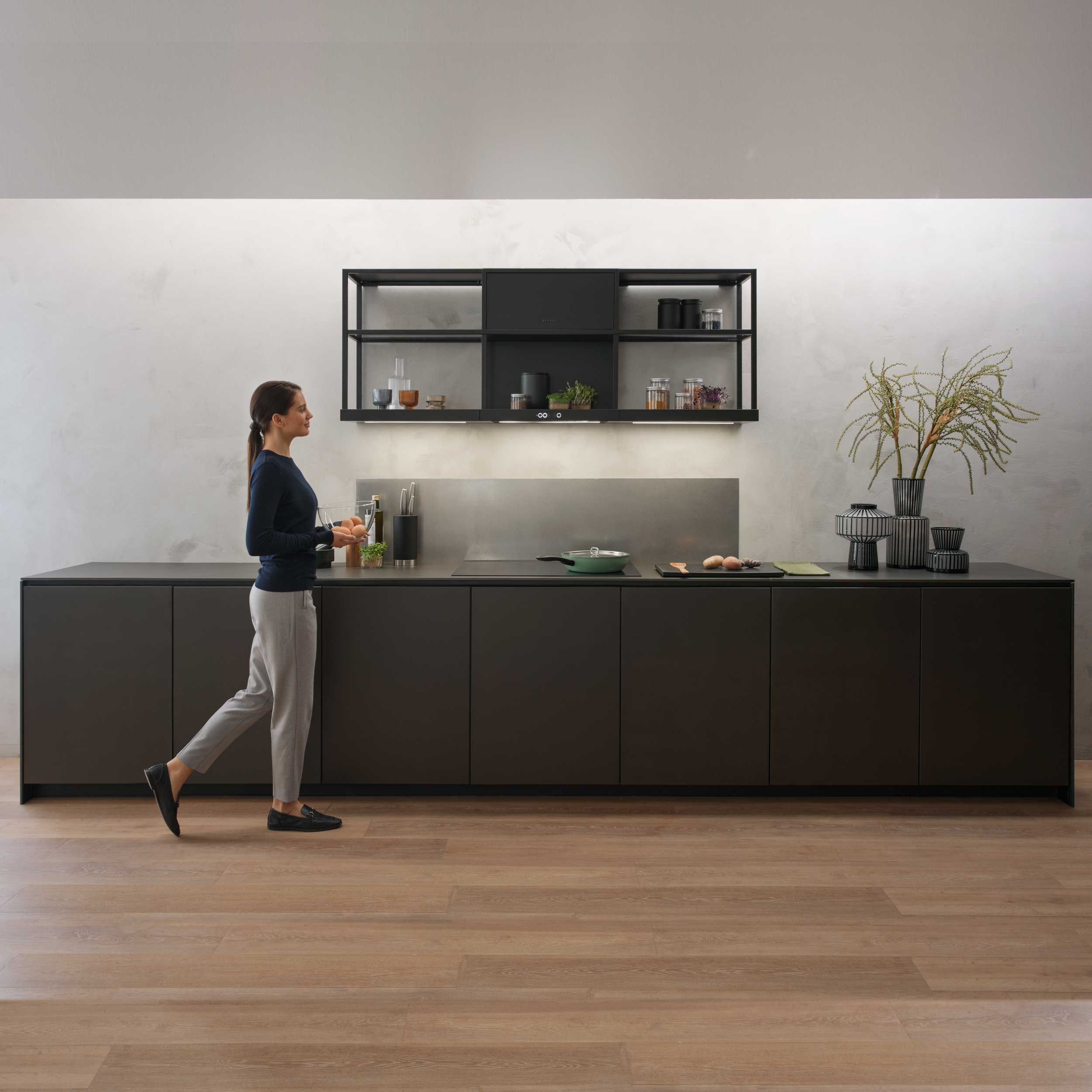 Modular Shelf Module er et tilbehør til Open Suite-systemet og gir ekstra oppbevaringsplass med et lett, industrielt uttrykk. Kombiner med lys- eller avtrekksmoduler for å skape din egen løsning.