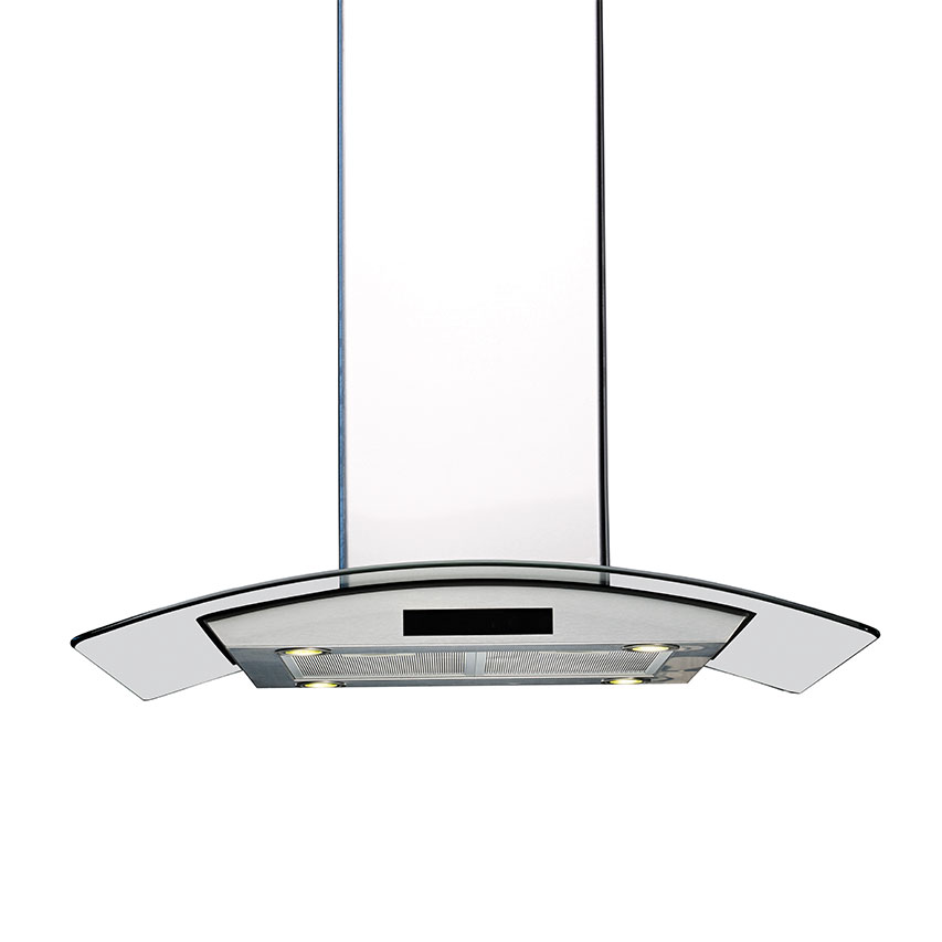 Fritthengende hette. Med innebygget motor - Rustfritt stål / glass - 900 mm - A