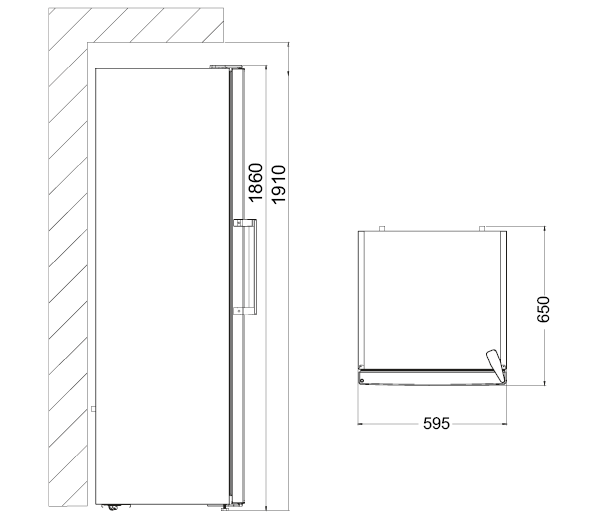 - Produkt (BxDxH) 595 x 650 x 1860 mm