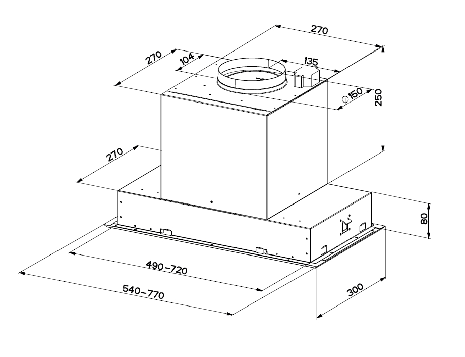 Rustfri ventilator for innbygging under overskap – 77 cm