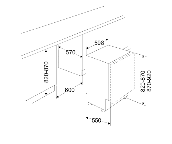 - Innebygde (BxDxH): 600 x 570 x 820 - 920 mm