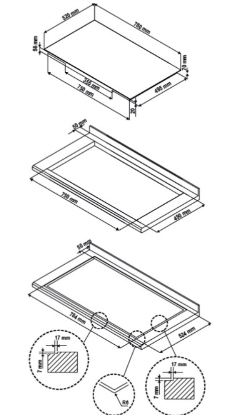 Induksjonstopp. Med rett kant - Sort - 78 cm